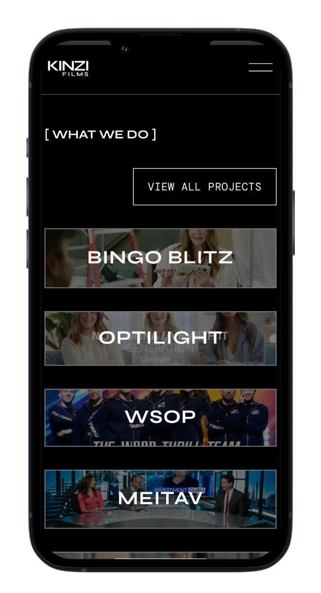 How We Worked TogetherWe collaborated with Micha to reimagine Kinzi Films’ digital presence as an immersive showcase of her cinematic world, designing a sleek, dynamic website that highlights her work through movement, texture, and intentional storytelling.